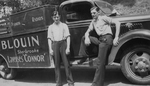Description :UN CAMION FORD, VU DE COTE, SERVANT A LIVRER LES MARCHANDISES DU MAGASIN ARTHUR BLOUIN. SUR LE COTE DE LA BOITE DU CAMION, ON PEUT LIRE PIANOS RADIOS BLOUIN SHERBROOKE LAVEUSES "CONNOR". A GAUCHE DE LA PORTE DU CAMION, LUCIEN BLOUIN EST DEBOU...