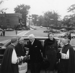 Description :MGR CABANA ACCUEILLE A LA CATHEDRALE DE SHERBROOKE, M. ET MME VANIER, GOUVERNEUR GENERAL DU CANADA.