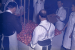 Description :1.1 : SEPT HOMMES ET UNE FEMME EN HABIT DE TRAVAIL AUTOUR D'UNE BOITE D'ORANGES. AU CENTRE, UN SYSTEME D'EMBALLAGE SOMMAIRE CONSTITUE DE TROIS BATONS SERVANT A TENIR LES SACS. - 1.2 : DEUX HOMMES REMPLISSANT DES SACS D'ORANGES RETENUS GRACE AU...