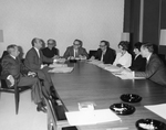Description :DIVERSES PERSONNES DISCUTENT AUTOUR D'UNE TABLE. IL Y A MARCEL VINCENT, MICHEL MARENZO, DIRECTEUR DU BUREAU INTER-REGIONAL DU MINISTERE DE L'EDUCATION, MGR ROGER MALTAIS, RECTEUR DE L'UNIVERSITE DE SHERBROOKE, RICHARD JOLY, DOYEN DES SCIENCES ...