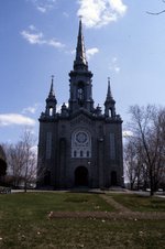 Description :FACADE DE L'EGLISE ST-JEAN BAPTISTE SITUE AU COIN DES RUES CONSEIL ET MURRAY A SHERBROOKE.