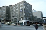 Description :VUE SUR L'EDIFICE CONTINENTAL SITUE AU COIN DES RUES KING OUEST ET WELLINGTON NORD A SHERBROOKE. AU REZ-DE-CHAUSSEE, DES COMMERCES DONT CELUI DE LAURA SECORD, PATRICE ROY CHAUSSURES, ET PLUSIEURS BUREAUX DE NOTAIRES ET AUTRES A L'ETAGE.