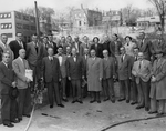 Description :EMPLOYES DE LA TRIBUNE ET PERSONNALITES DE LA POLITIQUE MUNICIPALE REUNIS POUR INAUGURER LE DEBUT DE LA CONSTRUCTION DE LA NOUVELLE PARTIE DE LA TRIBUNE