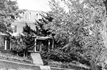 Description :FACADE DE LA RESIDENCE DE R.W.HENEKER SITUE SUR LA RUE FACTORY (AUJOURD'HUI RUE FRONTENAC), A SHERBROOKE. CELLE-CI EST EN PARTIE CACHEE PAR LE FEUILLAGE DES ARBRES AVOISINANTS.