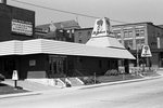 Description :VUE SUR LA FACADE DU RESTAURANT ST-HUBERT B.B.Q. SITUE SUR LA RUE DEPOT A SHERBROOKE.