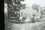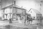 Description :3 MEMBRES D'UNE MEME FAMILLE SE TIENNENT DEVANT LEUR RESIDENCE. L'HOMME TIENT LA BRIDE D'UN CHEVAL. ON PENSE QU'IL S'AGIT DE LA FAMILLE D.W. HYNDMAN