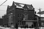 Description :VUE PARTICULIERE SUR LA PORTE D'ENTREE PRINCIPALE DE L'EDIFICE ET VUE D'ENSEMBLE DU COTE DONNANT SUR LA RUE DUFFERIN. L'EDIFICE CONTIENT DES ORNEMENTATIONS DE STYLE QUEEN ANNE. A REMARQUER LA TOURELLE OCTOGONALE.