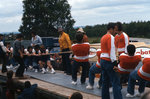 Description :SUR LA PLATE-FORME D'UN CAMION, DEUX EQUIPES S'AFFRONTENT A LA SOUQUE A LA CORDE. LA SCENE SE PASSE SUR LE TERRAIN PRES DU CENTRE D'APPRENTISSAGE, RUE VINGT-QUATRE-JUIN.