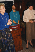 Description :SUR LA PREMIERE PHOTO ON RECONNAIT DE GAUCHE A DROITE, MESDAMES ANDREE DESILETS, CHRISTINE BEAUDOIN (COORDONNATRICE A LA LA SOCIETE D'HISTOIRE DE SHERBROOKE) ET LOUISETTE POTHIER. 1.2 NOUS EXPOSE MME MARIELLE LAFORCE DU CONSEIL DE LA CULTURE D...