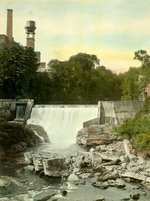 Sujets :EDIFICES COMMERCIAUX ET INDUSTRIELS; HYDRO-ELECTRICITE; PAYSAGES NATURELS; COURS D'EAU; RIVIERE MAGOG.