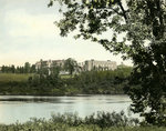 Description :VUE SUR L'UNIVERSITE BISHOP DE LA RIVE DROITE DE LA RIVIERE ST-FRANCOIS. ON APERCOIT LA FACADE DU PAVILLON CENTRAL, LE COTE DU PAVILLON DE DROITE ET DES PARTIES DE QUELQUES AUTRES BATIMENTS