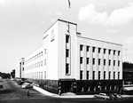 Description :VUE INTERIEURE DU BUREAU D'ENREGISTREMENT DU COMTE A SHERBROOKE. ON VOIT MONSIEUR LOWELL ET MADEMOISELLE TETU A LA DACTYLO. AU CENTRE, LE SYSTEME DE CHAUFFAGE CENTRAL.