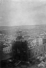 Sujet principal :CATHEDRALE DE SHERBROOKE LORS DE SA DEMOLITION EN 1917 (SEPTEMBRE).