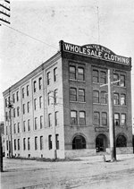 Description :VUE SUR L'EDIFICE DE LA WALTER BLUE & CO., MANUFACTURE DE VETEMENTS POUR HOMMES, GARCONS ET ENFANTS, SITUE SUR LA RUE KING A SHERBROOKE.