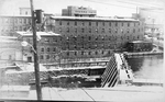 Description :VUE SUR LA MANUFACTURE PATON A SHERBROOKE. LA SECTION DONNANT SUR LA RIVIERE MAGOG.