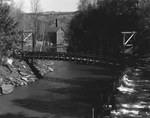 Description :UN PONT PIETON ENJAMBE UNE PETITE RIVIERE. ON APERCOIT A L'ARRIERE LE MOULIN BLANCHETTE.