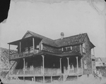 Description :VUE DE PRES D'UNE RESIDENCE DE STYLE VERNACULAIRE AMERICAIN EN BOIS. ON PEUT VOIR DES GENS SUR LA DROITE.