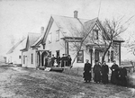 Description :A ST-HERMENEGILDE DE BARFORD, UN GROUPE-FAMILLE EST DEBOUT SUR LA GALERIE D'UNE RESIDENCE NON IDENTIFIEE DE STYLE VERNACULAIRE EN BOIS. A DROITE, LE LONG DE LA CLOTURE, 5 RELIGIEUX. DE GAUCHE A DROITE, ON RECONNAIT LE CURE ABEL TREMBLAY ET SON...