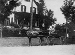 Description :VUE SUR CETTE RESIDENCE DE LA RUE QUEEN A SHERBROOKE. SUR LA RUE EN AVANT DE LA MAISON, UN HOMME ASSIS DANS SA CALECHE ATTEND. ON VOIT AUSSI, UN PEU PLUS LOIN, UNE PETITE FILLE.