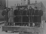 Description :GROUPE DE PERSONNALITES PRESENTES A L'INAUGURATION DE L'USINE DE GAZ PROPANE A SHERBROOKE. DE GAUCHE A DROITE: PAUL HAMEL, ARMAND FISETTE, GUY BRYANT (MAIRE), STANLEY-TOPAN HAYES, GASTON MASSE, ARMANDE RUSSELL, H.W.TOWNSEND, VINCENT R.GRACE.