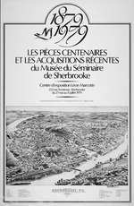 Description :AFFICHE PUBLICITAIRE POUR LE CENTRE LEON MARCOTTE DE SHERBROOKE QUI ANNONCE: LES PIECES CENTENAIRES ET LES ACQUISITIONS RECENTES DU MUSEE DU SEMINAIRE DE SHERBROOKE. ILLUSTRATION D'UN PLAN DE LA VILLE DE SHERBROOKE EN 1881.