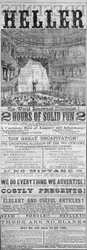 Description :PAGE PUBLICITAIRE QUI ANNONCE LE SPECTACLE D'UN GRAND MAGICIEN SURNOMME HELLER. DESSIN DE L'ILLUSIONNISTE SUR LA SCENE D'UN GRAND THEATRE.