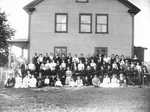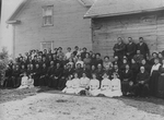 Description :PHOTO DE GROUPE PRISE AU BANQUET A ST-CLAUDE. ASSIS, 10e PAR LA GAUCHE, ON APERCOIT L'ABBE GODBOUT INSTALLE (PROBABLEMENT) ENTRE SON PERE ET SA MERE. ON NE PEUT IDENTIFIER LES AUTRES PERSONNES.