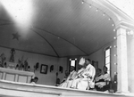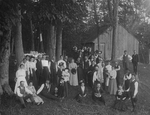 Description :UNE FETE CHAMPETRE REGROUPENT LES 1ers CITOYENS D'ASBESTOS ET QUELQUES MUSICIENS. PARMI EUX, LE MAIRE D'ASBESTOS ET SON EPOUSE: J.H.BOURBEAU ET LE MEDECIN DE LA PLACE: C.AMIOT.