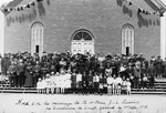 Description :PHOTO DE GROUPE (ECCLESIASTIQUE ET LAIQUES). CHAQUE PERSONNE EST IDENTIFIEE A L'ARRIERE DE LA PHOTO.