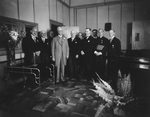 Description :DANS UNE PIECE DE LA STATION RADIOPHONIQUE CHLT, ESIOF PATENAUDE, LIEUTENANT GOUVERNEUR DE LA PROVINCE, POSENT EN COMPAGNIE DE: JOHNNY BOURQUE, DU MAIRE EMILE RIOUX, DU COLONEL PAPINEAU, C.B.HOWARD, C.PICARD, JACOB NICOL, M.PREVOST, J.N.CODERE...
