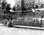 Description :DEVANT LE SEMINAIRE ST-CHARLES, UN GROUPES D'HOMMES ET QUELQUES ENFANTS POSE A L'OCCASION D'UN CONGRES DE MEDECINS TENU A SHERBROOKE.