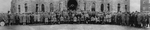 Description :DEVANT L'EVECHE DE SHERBROOKE, UN GROUPE (ENV.175) D'HOMMES POSE A L'OCCASION DU 36e CONGRES DES CHEVALIERS DE COLOMB A SHERBROOKE.