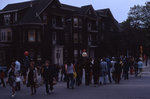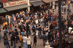Description :15.1 : A L'AVANT-PLAN, FOULE QUI SE DIRIGE VERS LA RUE BROOKS A L'ARRIERE-PLAN, ON APERCOIT DES MONUMENTS ET LE BLOC A APPARTEMENTS EN BRIQUES BRUNES, COIN KING ET BROOKS. - 15.2 : DE NOMBREUSES PERSONNES DEAMBULENT RUE DES MONUMENTS. ON APERC...