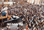 Description :DES CENTAINES DE PERSONNES SONT REUNIES POUR L'OUVERTURE DU FESTIVAL. ON VOIT UN CAMION, UN LAMPADAIRE ET L'AFFICHE DU COMMERCE LAURA SECORD. LA DATE 30 MAI 74 EST INSCRITE AU BAS DE L'IMAGE.