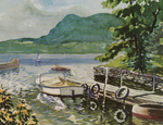 Description :DIVERS PAYSAGES NATURELS DES CANTONS DE L'EST DONT LE LAC MEMPHREMAGOG ET UN BATEAU A VAPEUR, UN PONT COUVERT NON-LOCALISE, UNE GRANGE, UNE CABANE A SUCRE.