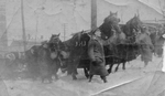 Description :MARCHE DE MILITAIRES NON IDENTIFIES ET DE LEURS CHEVAUX DECORES LORS D'UN DEFILE A L'OCCASION D'UN ENTERREMENT DURANT LA PREMIERE GUERRE