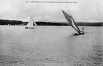 Description :DEUX BATEAUX A VOILE FONT LA COURSE SUR LE PETIT LAC MAGOG, PRES DE SHERBROOKE.