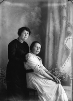 Description :DEUX DAMES: L'UNE DEBOUT S'APPUIE SUR L'AUTRE QUI EST ASSISE, MAINS CROISEES SUR LES GENOUX. MEME DECOR EN TROMPE-L'OEIL QUE SUR LA PHOTO .1.