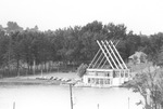 Description :VUE SUR LA FACADE DU PAVILLON ARMAND NADEAU CONSTRUIT SUR LE BORD DU LAC DES NATIONS AU PARC JACQUES CARTIER A SHERBROOKE.