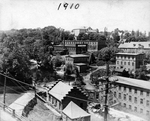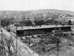 Description :VUE SUR LE QUARTIER DU VIEUX NORD PRES DE L'EDIFICE SUN LIFE EN DIRECTION DE LA PRISON. ON APERCOIT LES CHUTES DE LA RIVIERE MAGOG ET DIVERSES MANUFACTURE DONT LA MOORE CARPET CO. ET LA FOUNDRY'S MACHINE SHOP.