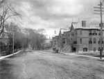 Description :VUE SUR LA RUE MONTREAL PRES DE L'INTERSECTION DE LA RUE WILLIAMS. A LA DROITE, ON RECONNAIT UN IMMEUBLE A LOGEMENTS EN BRIQUES DE STYLE QUEEN ANNE. UNE CALECHE ATTEND DEVANT. AU FOND A TRAVERS LES BRANCHES D'ARBRES, ON APERCOIT UNE COLONNE BL...