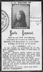 Description :PORTRAIT DE NOELLA RAYMOND, FILLE DE NOE RAYMOND DECEDEE A ST-HYACINTHE LE 4 OCTOBRE 1901 A L'AGE DE 16 ANS.