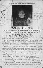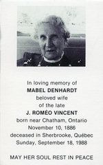 Sujet principal :CARTE MORTUAIRE DE MME MABEL DENHARDT VINCENT