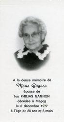 Sujet principal :MARIE GAGNON, EPOUSE DE PHILIAS GAGNON.