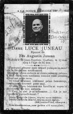 Notes :PORTRAIT DE LUCE JUNEAU, EPOUSE D'AUGUSTIN JUNEAU, DECEDEE A ST-JEAN BAPTISTE, QUEBEC, LE 17 MAI 1915 A L'AGE DE 80 ANS.