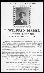 Description :CARTES MORTUAIRES DE J.WILFRID ET DAMASE MASSE DECEDES LE 19 JUILLET 1905. DAMASE ETAIT AGE DE 24 ANS ET SON FRERE DE 28 ANS.