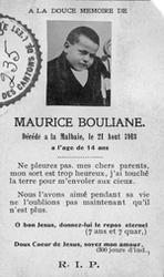 Description :CARTE MORTUAIRE DE MAURICE BOULIANE.