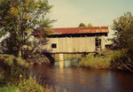 Description :VUE DU PONT COUVERT DE STANBRIDGE-EAST DANS LE COMTE DE MISSISQUOI. IL TRAVERSE LA RIVIERE AUX BROCHETS. CONSTRUIT EN 1878, IL A UNE SEULE TRAVEE DE 16 METRES ET EST DE TYPE HOWE