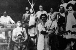 Description :FAMILLE TERRIENNE QUI S'EST REUNIE POUR UNE OCCASION NON IDENTIFIEE. PLUSIEURS FEMMES, 3 HOMMES ET QUELQUES ENFANTS EN TENUE DE TOUS LES JOURS.