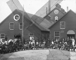 Description :ON APERCOIT UN GROUPE DE PERSONNES (ENVIRON 50) PHOTOGRAPHIEES A L'EXTERIEUR DEVANT UN BATIMENT.